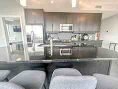- Kitchen: Sleek and modern kitchen with all appliances for a contemporary look with plenty cabinet storage to keep everything organized