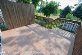 Split-entry twin home with updates throughout! - Move in and enjoy the rest of your summer on the composite deck overlooking the open space behind the property - no backyard neighbors! This split entry twin home features living area upstairs with gorgeous wood floors, tons of kitchen storage (plus a dishwasher!), and half bath. Downstairs you'll find the two bedrooms, laundry, and a full bathroom plus extra closet storage space.