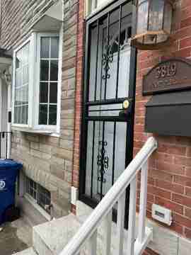 The property is a two-bedroom, two-and-a-half-bathroom townhouse in the Highland neighborhood of Baltimore City, near Patterson Park, Johns Hopkins Hospital, the local police station, shopping, farmers markets, and Greek Village. The master bedroom has a balcony where you can enjoy outdoor seating and views of the neighborhood.