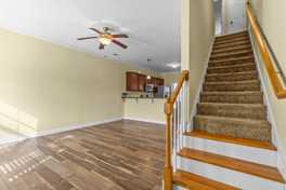 This beautifully maintained 2-bedroom, 2.5-bath townhome offers over 1,200 heated square feet of comfortable living space. The open-concept main level features 9-foot flat ceilings, gorgeous LVP flooring, granite countertops, stainless steel appliances, and an abundance of cabinet space – perfect for cooking and entertaining.