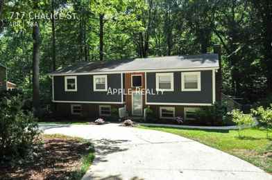This gorgeous 4 Bedroom, 3 Bath home is on a ½ Acre wooded lot in Archer Woods Subdivision in North Durham. Kitchen with Hardwood Flooring, granite countertops Range, Refrigerator, Dishwasher, Microwave that connects to Dining Room & overlooks the oversized deck. Living Room and bonus room perfect for gatherings or quiet nights at home. Living Room & separate dining room, Central Heat & Air (Gas Heat). Carpet and Luxury vinyl. Daylight basement with office / flex space and Family room with wood burning fireplace. Utility room with washer / dryer provided. Fenced in Backyard, Amazing deck overlooking a fenced back yard - steps lead down to a stream and play area. Outdoor shed. Pets OK