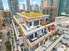 Welcome to The Penthouse at The Berczy! Absolutely stunning 1700 sq ft two-storey penthouse with incredible NE views over the entire St Lawrence Market Neighbourhood. Plus two enormous private terraces! The first level features an open concept entertaining space with 10' ceilings, a slick modern kitchen, separate den space ideal for a home office or lounge, powder room, plus a large guest bedroom with private ensuite bath. Then walk out to your first 40' wide private terrace complete with gas and water lines with views over the Flatiron Building and Berczy Park. The second level showcases an extremely spacious primary bedroom with two walk-in closets, a 5-pc ensuite bath, and a walkout to a second huge wraparound terrace (also with gas and water lines)! Over 1100 sq ft of combined exterior terrace space for a truly unique offering in one of the most sought-after buildings in the city. Berczy Park across the street, steps to St Lawrence Market, and minutes to the Financial District.