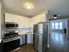 We now offer virtual video tours of all of our apartments! Schedule a virtual tour and rent this apartment from the comfort and safety of your home! Apply online! Stunning two bedroom plus den, one bathroom in Rogers Park walkup features heat and hot water included, rehabbed kitchen with modern white cabinets, stainless steel appliances, dishwasher, microwave, separate dining room, spacious living room with decorative fireplace and built in shelves, ceiling fan, hardwood floors, spacious bedrooms, great closet space, rehabbed bathroom, laundry room in building, huge shared deck space, street parking, and small pets are welcome. Close to Loyola University! Won't Last Long!
