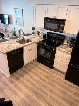 This two-story condo complex has its own community pool, and it is right near Northside Park. The park is a fantastic place to enjoy a huge playground, walking and biking paths, a pier on the bayside to go fishing, various family friendly free events and fireworks! Plus, this unit is near the crosswalk to cross Ocean Highway so you can go to the beach. There are plenty of restaurants that you can walk to or stay in and cook in this fully equipped kitchen. Utilities not included. Water is included