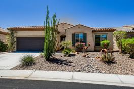 You are going to want everything this extraordinary Gathering floor plan has to offer! This home features West facing mountain views on the Golf course. This spacious home features 3 bedrooms, 3 baths, a den, two covered patios and an extended 2 car garage! Did we mention there is tile throughout the home. The kitchen has granite countertops, high quality cabinetry, a nearby formal dining area and additional sitting area at the kitchen island. The master suite has back patio access, a large walk-in closet, and a separate tub and step-in shower. Sun City Shadow Hills has 24 hour gate guarded security, two 18 hole golf courses, two clubhouses with swimming pools, fitness centers, and so much more! Furnished and ideal location! Summer rate available. Leased Jan-March 2026. Leased Jan-March 2027.