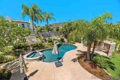Gated community with an Executive home w/a grand foyer, sweeping staircase, soaring ceilings & numerous custom upgrades. Gourmet kitchen w/2 granite top islands & breakfast niche opens onto the spacious family room. Luxury master suite features a lounge area, dual sided fireplace, 2 walk-in closets & balcony. 1bed & bath on 1st level. Home has Solar. Over-sized corner lot with Pool, Spa, BBQ & firepit. 4-car garage, Gated Driveway. Top rated Poway schools District.