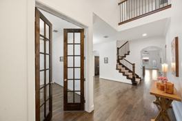Welcome to this stunning north-facing corner lot home in the award-winning Harvest community and highly sought-after Argyle ISD. Just a short walk to Argyle West Elementary, this spacious 4-bedroom, 4-bath home offers two bedrooms downstairs, a private study, an upstairs game room, and a large walk-in attic for storage. Custom finishes include engineered wood floors, plantation shutters, wood beams, designer lighting, and a shiplap mudroom. The gourmet kitchen features a stone-wrapped island, under-cabinet lighting, and upgraded hardware. Relax by the stone fireplace or enjoy pre-wired sound in the living room, patio, and garage. The primary suite boasts a spa-style shower and a custom closet with built-ins. The extended garage includes wall-mounted cabinets for extra storage.