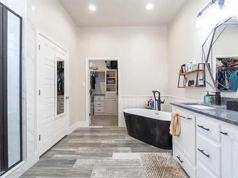 This 2020 parade home in Cantera is nestled in a quiet gated community. 3 bedroom 2.5 bathroom 2 car garage plus office. This home boasts high ceilings throughout, gorgeous light fixtures. Open floor plan Living room has a beautiful electric fireplace, built in shelving and a wine fridge. Separate laundry with sink and floating shelves. Kitchen has quartz/granite countertops large pantry and plenty of storage gas stovetop. The refrigerator will convey. Main level has a half bathroom off of living area. The primary suite is on main level with en suite bathroom stand alone bath tub, separate shower, and walk-in closet. Inviting staircase leads to the second floor where 2 bedrooms with Jack n Jill bathroom 2 separate sink areas. The office is also on second floor. Low maintenance front and backyard with a front and side patio with artificial turf. Security system conveys includes outside cameras, doorbell, front door, and garage door open with app.
