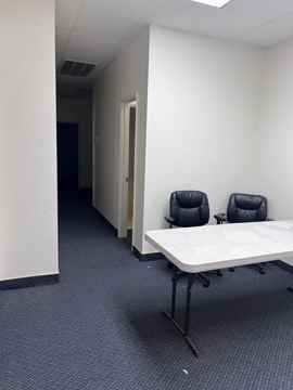 The unit is located on the 2nd floor, and features an open workspace, 3 small office rooms, 1 large office room, and 1 bathroom.
