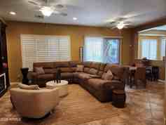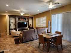 This home is a seasonal furnished vacation rental in the 55+ retirement community of Sun City Festival. Off peak rate is at $2,700 per month for May to Dec. and Jan to April $3,500. Home is also available for longer term. This beautiful home features 2 bedrooms, 2 baths and an office. Open floorplan with large in eat in kitchen, breakfast bar. Separate dining are off living room. Large master bedroom and bathroom. Bathroom has tub and separate walk in shower. Fenced backyard with extended covered patio and BBQ. Patio Sit outside and enjoy the AZ weather. Come enjoy all the amenities Sun City Festival has to offer. Resort style living at its finest!