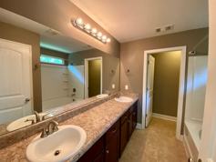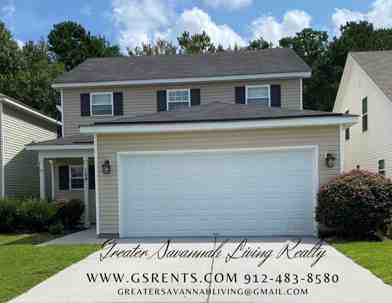 Come home to this beautiful 4 bed/2.5 bath home that is well maintained on a large private wooded lot! Large, bright living space opens to an inviting dining area. The kitchen includes appliances, tons of counter space and cabinets, and even a breakfast area! You'll also find a fabulous additional bedroom on the main floor. Next is a large laundry room w/direct access to that incredible backyard! Upstairs 3 spacious bedrooms/2 baths; with plenty of closet space. The large primary bedroom is beautiful and features a spacious ensuite with double vanities and a soaking tub. Enjoy the community playground and easy convenience to everything including Ft Stewart, Hunter AAF, GSU-Armstrong, Gulfstream, and Historic Savannah. Shopping, dining, and entertainment are only a few minutes away when you call this home! This property has central heat and air.