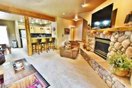 Upstairs you'll find two private bedroom suites, each with their own full bath, generous closet space, and unforgettable mountain views of Peak 1—wake up to the Rockies every morning! The inviting main level features a cozy living area with a gas fireplace, queen sofa sleeper, and a fully equipped modern kitchen that flows out to your own private deck—perfect for morning coffee or evening stargazing. The oversized one-car garage has plenty of room for your vehicle and all your mountain gear—bikes, skis, boards, you name it.