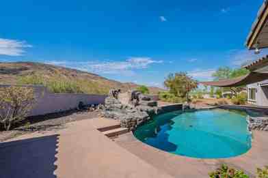The backyard is a true oasis, featuring a gas firepit with seating, built-in BBQ, diving pool with rock waterfall/slide, and a real grass lawn. Upstairs, you'll find a second suite with a wrap-around deck and wet bar, where you can enjoy the sunrise/sunset with fantastic views.