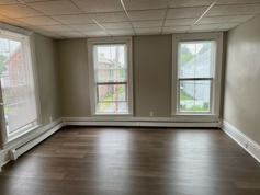 Spacious second-floor unit enveloped in natural light, features two bedrooms and an office. Offers washer & dryer hookups, vinyl flooring, and a huge laundry/mudroom.