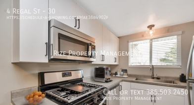 4 Regal St #30, Murray, UT is a 2 bedroom, 1 bathroom apartment for rent. It is located in the Murray neighborhood of Murray. It has apartment amenities including deck, microwave, air conditioning, in-unit laundry, balcony, carpet, on-site laundry, assigned parking, and dishwasher. Cats and dogs are allowed, making it a pet-friendly apartment.