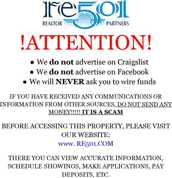 – BEWARE OF SCAMS | We do NOT advertise on or Facebook Marketplace. Learn more about SCAMS here: www re501 lease beware-of-scams