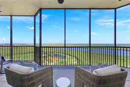 "HOME IN THE SKY" at Aversana in Hammock Bay Golf and Country Club... This 20th floor 2 Bedroom + Den/2 1/2 Bath condo offers spectacular views of the surrounding hammocks, waterways, and the lush greens of the golf course from your indoor living space as well as the multiple screened balconies each with its own unique perspective! As soon as you step off the elevator into your private entryway, you will appreciate the soothing color palette and exquisite artwork, which wonderfully extend throughout the home. The well-appointed kitchen is sure to please any chef with its gorgeous countertops, backsplash, and custom cabinets. Hammock Bay is a guard gated community for your security and there are 2 under building parking spaces for your convenience. Aversana offers its own amenities including an inviting pool with spa, fitness room, and an entertainment room with billiards. Located between Marco Island and Naples, you have the option of enjoying the restaurants, shopping, entertainment venues, and beaches of both areas.
