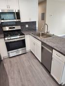 Modern Kitchen: Prepare gourmet meals in the contemporary kitchen featuring new cabinets, sleek appliances, granite countertops, and plenty of cabinet space.