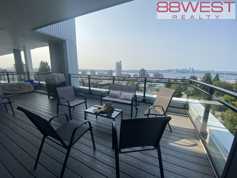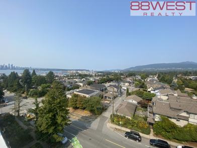 Penthouse, 2 bedroom, 2 full bathroom, plus a room with sliding glass door which can be used as the 3rd bedroom, or dining room, 1007 Sq. ft., located on the 5th floor, very bright with lots of natural light, facing west and north, very large balcony (480 Sq. ft.) with amazing view of west, downtown and lions gate bridge, great layout, laminate flooring, radiant flooring heating system, dishwasher and full size washer and dryer, master bedroom with ensuite and walking closet and a separate balcony.