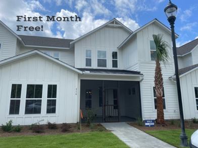 FIRST MONTH FREE! In the heart of Bluffton! Washington Square 3 bedroom + office, 2.5 bath townhome complete with attached one-car garage, two additional paved driveway parking spots and a screened in porch!