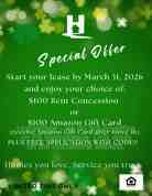 March Special!! Enjoy your choice of $100 Fee Rent off 1st Full Month or $100 Amazon Gift Card after move-in with Move-in by March 31, 2026!