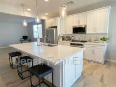 No Application Fees! Beautiful and well-maintained 3 bedroom, 2 bathroom single-level Surprise home featuring modern upgrades and a desirable open floor plan. This home offers wood plank-style tile flooring throughout all main living areas, upgraded neutral carpeting in bedrooms, two-tone paint, upgraded fixtures and doors, and ceiling fans in each room. The stunning kitchen features quartz countertops, tile backsplash, upgraded cabinetry with crown molding, a large island with breakfast bar, gas cooktop, and stainless steel appliances. The spacious primary suite provides abundant natural light, a large walk-in closet, dual sink vanity, and oversized step-in shower. Washing machine and dryer are included. The front and backyard feature easy-to-maintain desert landscaping, and the backyard offers a comfortable outdoor space for relaxing or entertaining.