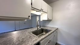 Updated kitchen includes modern sink, faucet, stainless steel glass top stove and new refrigerator. Enjoy the robust space in the open living room and dining room area, with ample storage closets and washer and dryer included in unit!