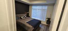 Welcome to your new home in a serene, low-rise, low-traffic building located on the first floor. This thoughtfully designed unit offers both comfort and convenience, featuring ample living space with one bedroom and a versatile den. The open layout ensures a seamless flow between rooms, perfect for relaxation and entertainment. Step onto your expansive balcony patio, an outdoor oasis ideal for al fresco dining or unwinding with a book. Say goodbye to parking hassles with your designated parking space. Enjoy the tranquility of your surroundings, nestled in a peaceful setting. The den provides flexibility for a home office, guest room, or cozy reading nook, and a spacious laundry room keeps your home organized. Plus, you're just steps from public transit and shopping centers, and only 20 minutes from downtown.