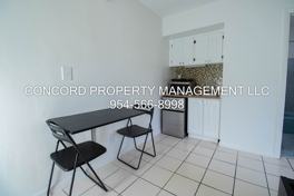 The efficiency apartment comes furnished, and is a great first apartment or perfect for someone looking to downsize. Monthly rent includes water, sewer, electricity, trash removal services, monthly preventative pest control, landscaping, pool maintenance, assigned parking, and window blinds. Call 954-566-8998 ext 1