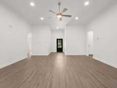 This newer brick home in Leesville offers 1,922 square feet of beautifully designed living space with four bedrooms, two bathrooms, and a two-car garage. Just 15 minutes from Fort Johnson’s main gate, the home features an inviting open floor plan with high 11-foot ceilings, recessed lighting, and ceiling fans in the spacious living area. Wood flooring runs throughout, adding a warm and cohesive feel to every room while ensuring durability and easy maintenance. The kitchen is a standout, featuring custom cabinetry, sleek granite countertops, an oversized island with a breakfast bar, and a generous pantry. It comes fully equipped with modern appliances, including a range/oven, refrigerator, microwave, and dishwasher.