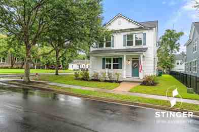 - Covered front porch with beautiful views of the pond and fountain just across the street