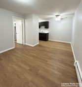 Cozy space with new laminate wood like flooring, redone bathroom and kitchen.