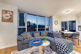 Enjoy luxury condo with 2.5 bedrooms +sofa bed, 2 baths, kitchen, 2 work stations with spectacular City Skyline, water & mountain views, especially breathtaking at night.