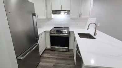 This newly upgraded unit features stylish new flooring, fresh paint, modern bathroom vanities, and updated appliances. With 9' ceilings, a cozy gas fireplace, flex space (ideal for an office), and in-suite laundry, the home combines comfort with functionality. The kitchen includes a breakfast bar and open layout, perfect for entertaining.
