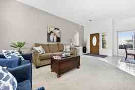 Unfurnished; Annual Lease. This Sun City Palm Desert 2 Bed, 2 Bath Orrefors plan home is located between two clubhouses and golf course. This home has a south facing rear yard and OWNED SOLAR! A gated front courtyard and low maintenance desert landscaping provides curb appeal. Inside you will find 10' ceilings, shutters, wood blinds, ceiling fans and indoor laundry with utility sink. The kitchen features Corian counters with stainless steel appliances. There is tile in the kitchen, breakfast nook, dining area, family room, and bathrooms. The breakfast nook has abundant recessed lighting. The rear patio is accessible by a slider from the living room and a French door from the family room. The owners suite has a bay window and large oversized closet with mirrored wardrobe doors. The owners suite bath has a large skylight, dual sinks & a stall shower. The guest bath has a shower over the tub. The 2 car garage has a nook for golf-cart parking. Golf Cart is included in the lease. Sun City Palm Desert is resort living for 55 plus at its finest! Amenities include gated and guarded entry with 24- hour patrol, two 18-hole Golf Courses, three clubhouses, multiple on site restaurants and cafe's, two fitness centers, pools and hot tubs, Pickleball & Tennis courts, dog parks, jogging and bike paths, 80 plus clubs and groups and much more!