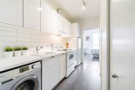 FEATURES AND LOCATION: Sleek and modern 1 bedroom 1 bathroom in Sequel 138. Located in the heart of Chinatown/Gastown, you can walk to Stadium Skytrain, T&T, Costco, and waterfront. The efficient and functional layout features a spacious living area and bedroom with views of mountains, 9ft ceilings, and plenty of cabinet spaces and storage. Washer/Dryer combo in unit. Laminate flooring and LED lighting throughout the unit. Ideal for Downtown commuters! You are steps to hip restaurants, coffee shops, and amazing stores this area has to offer! Enjoy the community urban garden and common outdoor courtyard with harvest table and BBQ. The building features a glass elevator with secure floor access, secure lobby entry, and bike lockers.