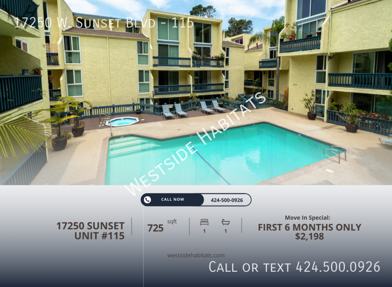 Located on Sunset Blvd in prime Pacific Palisades situated between Santa Monica and Malibu. Our property is minutes to the beach and a short distance to the shops and restaurants in Pacific Palisades Village. We’re located right next door to the beauty and serenity of The Lake Shrine Realization Center. Our building has 75 beautifully and perfectly updated units, which are a mix of single, one bedrooms, loft and two-bedroom apartments. After a day at the beach or work you can come and take a dip in the crystalline year-round heated pool or jacuzzi and enjoy the warm sunshine lounging poolside. It is the perfect place to relax, refresh, and re-charge.