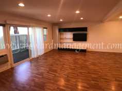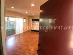 Spacious lower 2 bedroom condo unit with extra large fenced in patio with open views of the tree lined courtyard. Patio has a large closet to store surf boards, gardening tools, bikes, etc. Beautiful hardwood floors throughout. The living room features a new wall AC unit, built in entertainment center. Kitchen comes stove/oven and a stainless steel refrigerator with french doors. Both bathrooms have been recently remodeled. Spacious and open living areas with one en-suite bathroom in the master bedroom. Condo comes with covered Tandem parking for two vehicles located very close to the unit. Location handy to pool, gym and laundry. Gas, water, trash, sewer and basic cable are paid for! Sorry, no pets allowed.