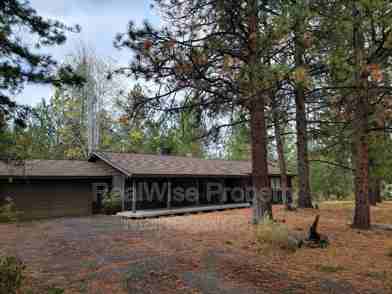 Available now. Pets considered with approval, an additional $500 deposit, and $35 monthly pet rent. This charming 3-bedroom home is a rare rental find in the prestigious Woodside Ranch neighborhood, nestled on over 2 acres of Ponderosa pines, just outside the Bend City limits. This well-built home boasts beautiful hardwood floors throughout, a spectacular stone fireplace with an insert, vaulted ceilings, and spacious bedrooms with plenty of built-in storage. The kitchen has a new range and dishwasher. The home is also air-conditioned, has a washer and dryer, and a roomy double-car garage. This is a great walking neighborhood, safe, with some scenic paved loops right out the door and nearby dirt trails into Deschutes National Forest. The tenant is responsible for all utilities, garbage, and landscaping.