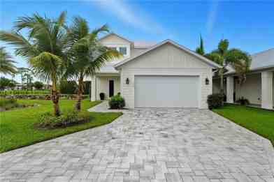 Set on a premier corner lot within the exclusive Seahorse Cottages at Cambria, this furnished 3-bedroom, 3.5-bath pool home embodies the best of modern Naples living-combining refined design, effortless indoor-outdoor flow, and an unbeatable location just minutes from the beach and Downtown Naples. Built in 2022 and barely lived in, the two-story residence features extensive designer upgrades, including an expanded lanai with outdoor kitchen and wine fridge, custom-built closets, plantation shutters, window treatments, a privacy fence, and lush tropical landscaping. The open-concept layout showcases a chef's kitchen with quartz countertops, premium appliances, a farmhouse sink, spacious butler's pantry, and full-height custom cabinetry. The living and dining areas are highlighted by soaring cathedral ceilings and sliding doors that open seamlessly to the oversized lanai with a heated pool and spa-perfect for relaxing or entertaining. The first-floor primary suite offers direct lanai access, dual custom closets, a spa-inspired bath with quartz vanities and walk-in shower. Upstairs, you'll find two additional en-suite bedrooms and central loft that opens to a large balcony overlooking the golf course and lake - perfect for entertaining family and friends. Additional features include a custom cable-railed staircase, tongue-and-groove wood accents, epoxy-finished garage floors, and impact-rated windows and doors throughout. Offered turnkey furnished, this home provides a truly seamless transition into Naples' seasonal lifestyle. Seahorse Cottages at Cambria is an intimate, pet-friendly enclave of just 20 homes with low HOA fees and exceptional proximity to Naples' world-class beaches, dining, and shopping-an elegant blend of privacy, convenience, and contemporary coastal luxury.
