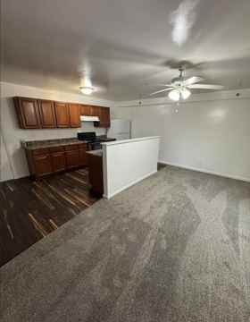 All electric, no gas appliances. Oven/Range, Refrigerator, and Vent Fan provided. Stackable electric washer/dryer HOOKUPS provided.