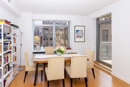 Measuring 1,062 square feet, this sun-flooded corner apartment features gracious proportions, sleek high-end finishes, sprawling chef's kitchen and balcony! This is a flexible 2 bedroom with a primary bedroom and an interior home office/second bedroom. Enter through a proper foyer with coat closet and continue into an oversized open living room, dining room and kitchen. High ceilings and oversized windows offer incredible light throughout. The living room leads to your private balcony which faces North and East. The open chef's kitchen features top of the line appliances, custom cabinetry and breakfast bar seating. The primary bedroom boasts a double exposure with river views, floor to ceiling windows and an incredible walk-in closet. The bathroom is conveniently located right outside of the bedroom and also offers incredible storage space. The interior home office/guest bedroom is privately tucked away in its own corner of the home and is equipped with its own closet. W/D in-unit. STORAGE UNIT INCLUDED. No pets. 303 East 33rd Street is a luxury modern oasis in the heart of Murray Hill. The building offers an incredible lifestyle with a full suite of amenities for residents. Full-time doorman, staff and super. Furnished and landscaped courtyard and roof garden (with grill and putting green). State of the art fitness center, playroom, storage, bike storage and onsite garage (with direct access through the lobby). Conveniently located just off of Second Avenue, just moments from some of the best restaurants, cafes and shops that the neighborhood has to offer including Trader Joes.