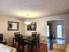 Hardwood flooring on the main level with kitchen. The kitchen features stainless steel appliances, custom counters and right off the dining area.