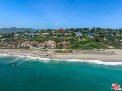 Perched on Birdview bluff above scenic Westward Beach, this light-filled contemporary residence has the amenities of a vacation resort and the deeply rewarding comforts of home. Commanding sweeping ocean and island views, the approximately 0.57-acre property is richly landscaped and terraced, with balconies, decks, and patios. From the gated entry, the long drive passes a tennis court with stadium lighting and a swimming pool and spa in a very private garden setting with a wide flagstone pool deck for lounging. The drive ends in a motor court with ample guest parking, and the home opens to reveal breathtaking ocean views from a stunning great room. With cathedral ceilings, a corner fireplace, a window seat, beautiful wood floors, and handsome built-ins, the great room has expansive ocean-view windows and glass doors that slide away to provide seamless access to the wraparound deck for al fresco dining and entertaining. A lovely dining area shares the views, and the professional chef's kitchen is just beyond, featuring an island with bar seating, marble countertops, a beverage cooler, quality appliances, and a wide garden-view window above the sink. Off the kitchen is a mud room with a door to the side garden where there is a water feature and an outdoor shower. Also on the entry-level are two bedrooms, a full bath, and a powder room. Steps near the front door lead down to the ocean-view primary suite, which occupies the entire lower level. This private haven has a sitting area with a fireplace, closet, generous built-ins, and a wall of glass opening onto a partially shaded patio and gorgeous ocean views. The primary bath, which also has ocean views, has a door to the backyard as well as access to an additional storage/closet/laundry room. On the ocean side of the house, the backyard provides numerous options for entertaining and relaxation, with a large flagstone patio, a lawn, a firepit area with seating surrounded by a mature succulent garden, and a deck with sitting areas that overlook the beach, the waves, and views to the horizon. The home has central air conditioning, a two-car garage, outdoor irrigation, and a full complement of smart-home features, including automated window shades, Sonos sound, and security. This is an estate of exceptional quality and comfort. Available for sale $16,995,000.