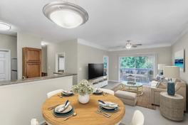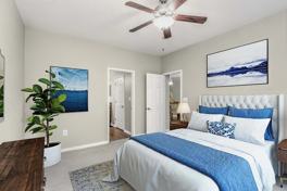 This cozy space offers 790 sq ft, of living area and meets our standard eligibility criteria this one bedroom apartment homes complete with stainless steel appliances, walnut plank floors, 9-foot ceilings framed with crown molding, in-home washers and dryers and more. We've got your work from home space covered with a designated study in the 1.1 Study and 2.2U Study floor plans as well as built-in desks in 3 additional floor plans