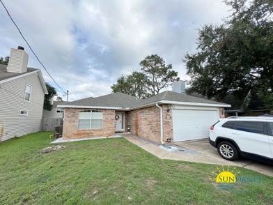 Discover the perfect long-term rental nestled in the heart of Shalimar. This spacious 3-bedroom, 2-bathroom home is ideally situated on a tranquil cul-de-sac, providing a peaceful retreat for you and your family. With a generous 2-car garage and convenient driveway parking, there's ample space for your vehicles. Inside, enjoy year-round comfort with electric AC, heating, and water heater, all designed to keep you cozy. Ceiling fans and blinds add to the comfort and ambiance. The home boasts luxury vinyl and tile flooring throughout. While the fireplace is an electric insert only, it adds a touch of warmth to the living room. The split bedroom floor plan offers privacy and convenience. The kitchen is a chef's dream, showcasing stainless steel appliances, fully equipped with an electric stove/oven, refrigerator with an ice maker, dishwasher, mounted microwave, garbage disposal, spacious eat-in kitchen, and formal dining space. Prepare to be inspired as you cook and entertain in this culinary haven. A laundry room with a washer/dryer is provided AS-IS for your convenience. The primary suite is a true oasis with a dual vanity, a Jacuzzi tub, and a stall shower, providing a spa-like experience in the comfort of your home. The heated and cooled Florida room offers versatility and a serene view of the fully fenced backyard. Enjoy the tranquil backyard oasis with a built-in firepit, perfect for gatherings and relaxation. An open patio completes this charming home, making it an ideal place to call your own. Don't miss out on this fantastic opportunity!