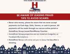 HomeRiver Group does not advertise properties on, LetGo, or other classified ad websites. If you suspect one of our properties has been fraudulently listed on these platforms, please notify HomeRiver Group immediately. All payments related to leasing with HomeRiver Group are made exclusively through our website. We never accept wire transfers or payments via Zelle, PayPal, or Cash App. Lease your home safely through www Homeriver com or with the assistance of a licensed HomeRiver Group leasing agent. All leasing information contained herein is deemed accurate but not guaranteed. Please note that changes may have occurred since the photographs were taken. Square footage is estimated.