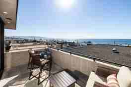 Experience the ultimate in coastal luxury living with this west-facing, fully furnished high-end townhome located in the heart of downtown Manhattan Beach, just steps from the sand and vibrant shops and restaurants. The top floor features an open-concept layout with a custom gourmet chef’s kitchen, fully equipped with stainless steel appliances and a sleek breakfast bar. The adjoining dining and living areas offer unobstructed white-water views stretching from the Palos Verdes Peninsula to Malibu, including a front-row view of the iconic Manhattan Beach Pier. On cool ocean-breeze evenings, gather around the cozy fireplace or slide open the floor-to-ceiling glass doors to step onto the outdoor patio — the perfect spot to soak up the Southern California sun or take in breathtaking sunsets. A separate office and bonus area provide a versatile space ideal for working from home, complemented by a convenient powder room. The second floor boasts a luxurious primary suite with a spacious bedroom and spa-like bathroom featuring both a soaking tub and separate shower. A second bedroom offers floor-to-ceiling closets, an en-suite bath, and access to a private patio. On the bottom floor, you’ll find a second private master suite with a large bathroom, tiled shower, and bathtub, along with a dedicated laundry room offering ample storage space. Property highlights include: Sweeping panoramic ocean views Walnut hardwood floors & custom-designed cabinetry High-end tile, Caesarstone counters, and modern fixtures Central A/C Two-car garage plus two additional parking spaces Furnishings: The property can be leased unfurnished or fully furnished with the stylish pieces featured in the photos. This rare offering combines high-end finishes, thoughtful design, and a premier location — the very best of Manhattan Beach coastal living.