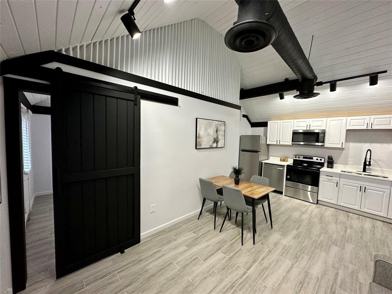 Fully furnished and completely remodeled efficiency apartment located only 1 mile from TCU! This unit was updated with vaulted ceilings, quartz countertops, all new flooring, new cabinets, all new hvac system and a lot more. Close to shopping, restaurants, fort worth zoo, dickies arena and quick access to the highway. Has its own private entrance and fenced in yard. This beautiful unit is located at the back of the main house on the side street (8th ave and W Bewick ST).