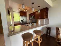 This spacious 1 Bedroom, 1 Bath condo offers floor to ceiling windows with stunning ocean and mountain views. Fully furnished with tropical décor, an updated kitchen with granite counters and stainless appliances, and a renovated bath with double sinks and step-in shower. Sliding bedroom door allows for privacy or open living. Rent includes electricity, water, central A/C, cable, and internet. Includes 1 unassigned parking stall, storage, heated saltwater pool, BBQ area, and community laundry on every floor. Just 1 mile from famous Mākaha Beach.